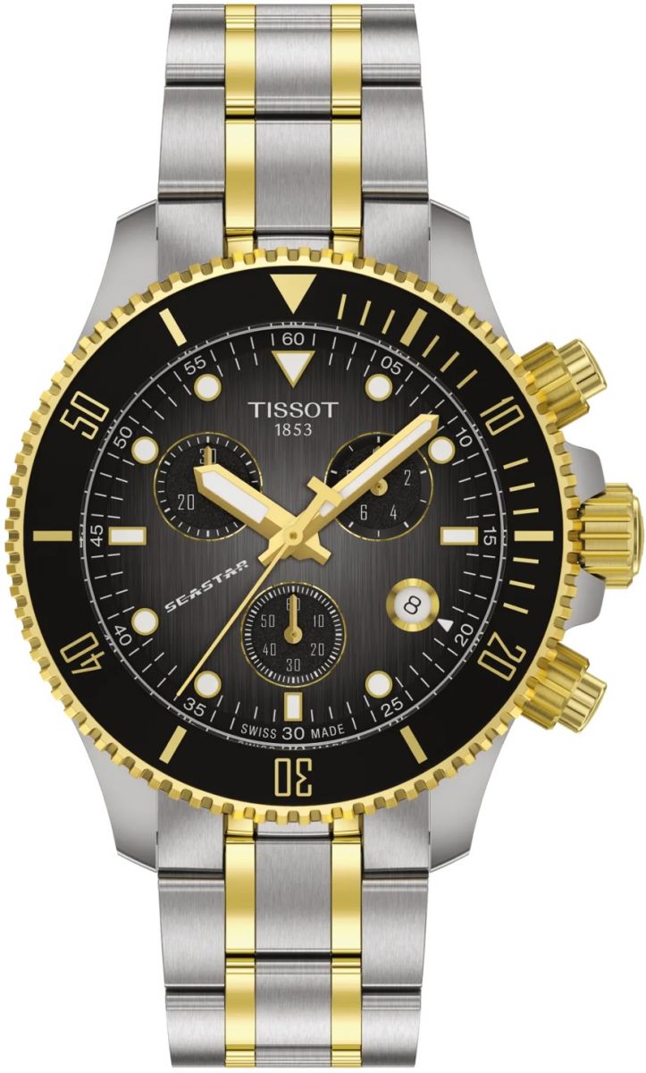The automatic choice for divers. With its high water-resistance up to a pressure of 30 bar (300 m/1000 ft), screw-down crown and caseback as well as its unidirectional bezel, the Tissot Seastar 1000 is the ultimate diving watch.